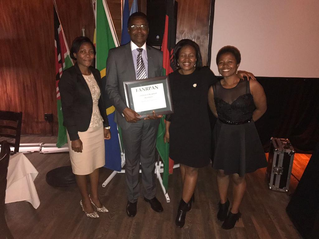 | FANRPAN Awarded NASFAM CEO Dyborn Chibonga for recognition of services rendered to the Regional Network |